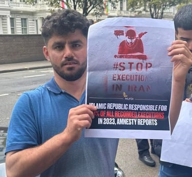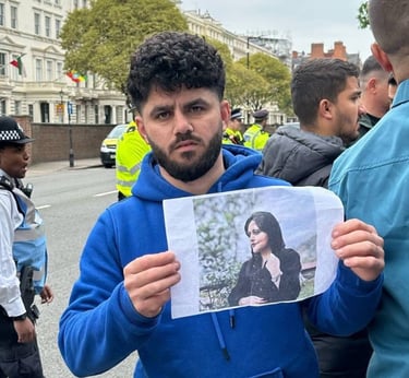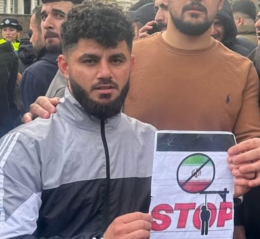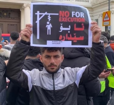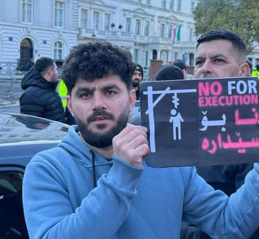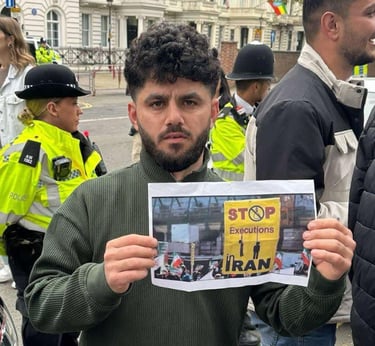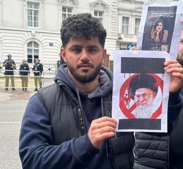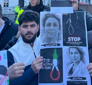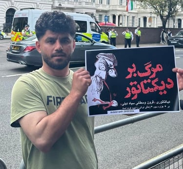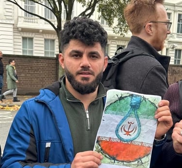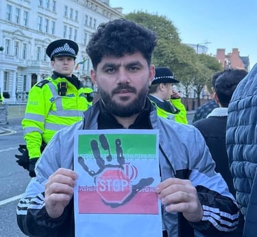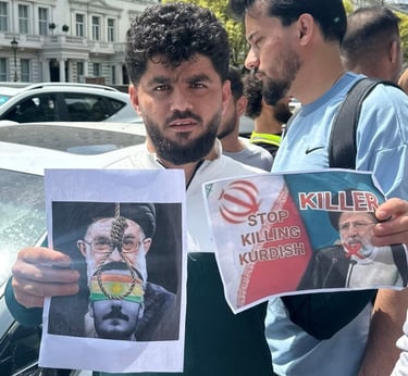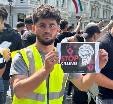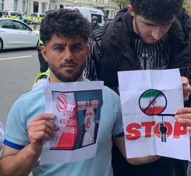 On this day, I joined Kurdish protesters outside the Iranian Embassy to stand against the oppression and killings happening in Iran. I wanted the world to see that we, as Kurds, will not stay silent while our people are being murdered for wanting freedom. I held signs and chanted for justice, calling for an end to the dictatorship that destroys lives.
